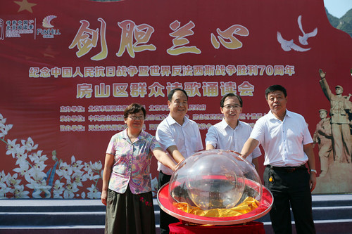 2015年是中国人民抗日战争暨世界反法西斯战争胜利70周年。第五届书香中国·北京阅读季把以纪念抗日战争暨世界反法西斯战争胜利70周年为主题贯穿于全年的阅读推广活动之中。其中,8月份集中举办的抗战活动近百场,重点活动20余场。由北京市新闻出版广电局、北京市房山区人民政府联合主办,中共房山区委宣传部、房山区文委、房山区民政局、房山区十渡镇人民政府联合承办,河北省涿州市文广新局、海淀区文化创意产业协会、房山区文化活动中心共同协办的“剑胆兰心”——纪念中国人民抗日战争暨世界反法西斯战争胜利70周年房山区群众诗歌诵读会活动于2015年8月28日在平西抗日战争纪念馆举行。