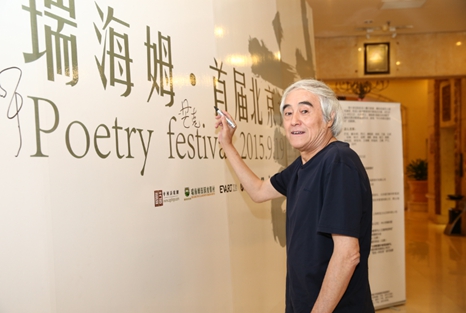 摘要:9月19-9月21日,为期三天的瑞海姆·首届北京诗歌节在密云(瑞海姆田园度假村)圆满落幕。首届北京诗歌节邀请到芒克、翟永明、西川等20多位国内著名诗人、诗评家以及岳敏君等艺术家参加,此外,著名原创音乐人蒋山、韩晶、徐怀超、闫泽欢等也受邀参加。诗歌节共分为5个单位,“国人记忆:中小学课本里的诗(1949-2015)”公共空间展、“诗歌教育与人文素养的养成”研讨会、“诗朗诵音乐会”、“与诗人共进长桌篝火晚宴”、“诗歌早茶会”。