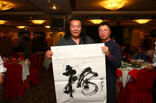 欢迎晚宴现场诗人祁国(左一)、嘉宾张宪国(右一)