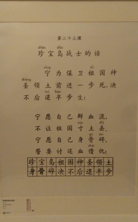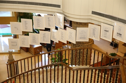 9月19日上午,位于瑞海姆田园度假村大堂旋转楼梯的“国人记忆:中小学课本里的诗(1949-2015)”公共空间展正式对外开放。此次国民诗歌记忆展览,从1949年到2015全部人教版中小学语文教材中,挑选出近100首现代诗歌,划分为“建国初期”、“社会主义大建设”、“文革时期”、“改革开放”、“新世纪”五个单元,系首次系统展出。