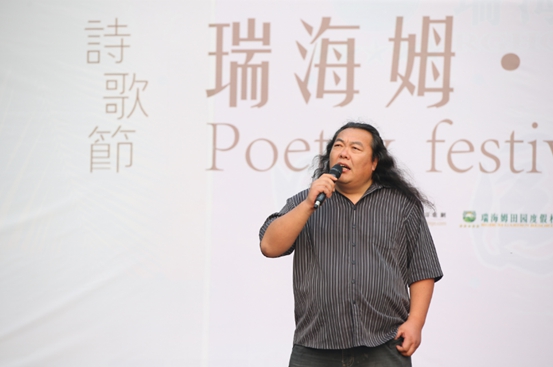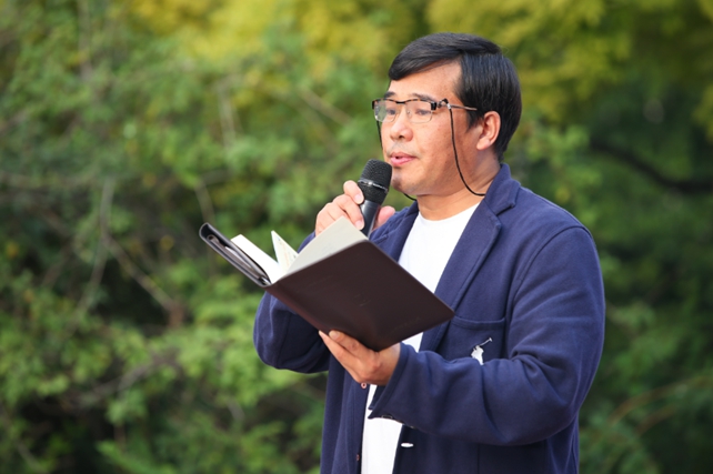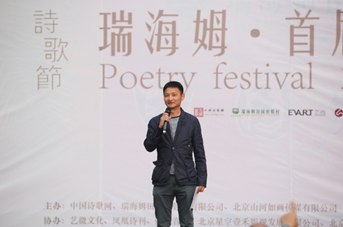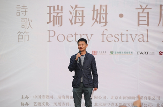 9月20日下午,作为诗歌节的重要组成部门,诗朗诵音乐会在北京密云白河畔露天举行。活动一开始作为主办方代表的北京首都机场旅业有限公司副总、瑞海姆田园度假村总经理杨敬东首先对支持、赞助本次活动的各单位表示衷心的感谢!对莅临诗歌节的各位来宾、诗人朋友、广大诗歌爱好者们表示诚挚的欢迎!杨敬东称“歌是人间最美的艺术花朵,让我们在瑞海姆田园度假村如诗如画的风景里与诗结缘,以诗为伴,享受诗歌带给我们心灵的欢悦和富足。”