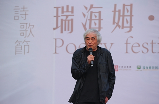 “它脚下那片泥土,每抓起一把,每抓起一把,都一定会攥出血来”,芒克激情朗诵了自己80年代写作的《阳光中的向日葵》,带着全场的诗歌爱好者重温这熟悉的诗句。