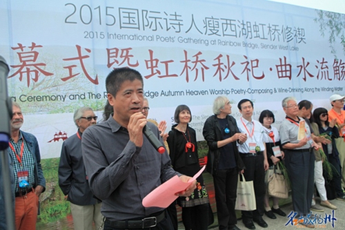 26日上午,第三届2015国际诗人瘦西湖虹桥修禊在西园曲水隆重开幕。中外11名一线成就卓著诗人集会,其中有以“八零一代”著称的、活跃于世界的罗马尼亚女诗人玛格达-卡尔聂奇、著名德语女诗人伊尔玛-拉库萨等以及中国的当代诗人郑愁予、朦胧诗人的代表之一芒克等。