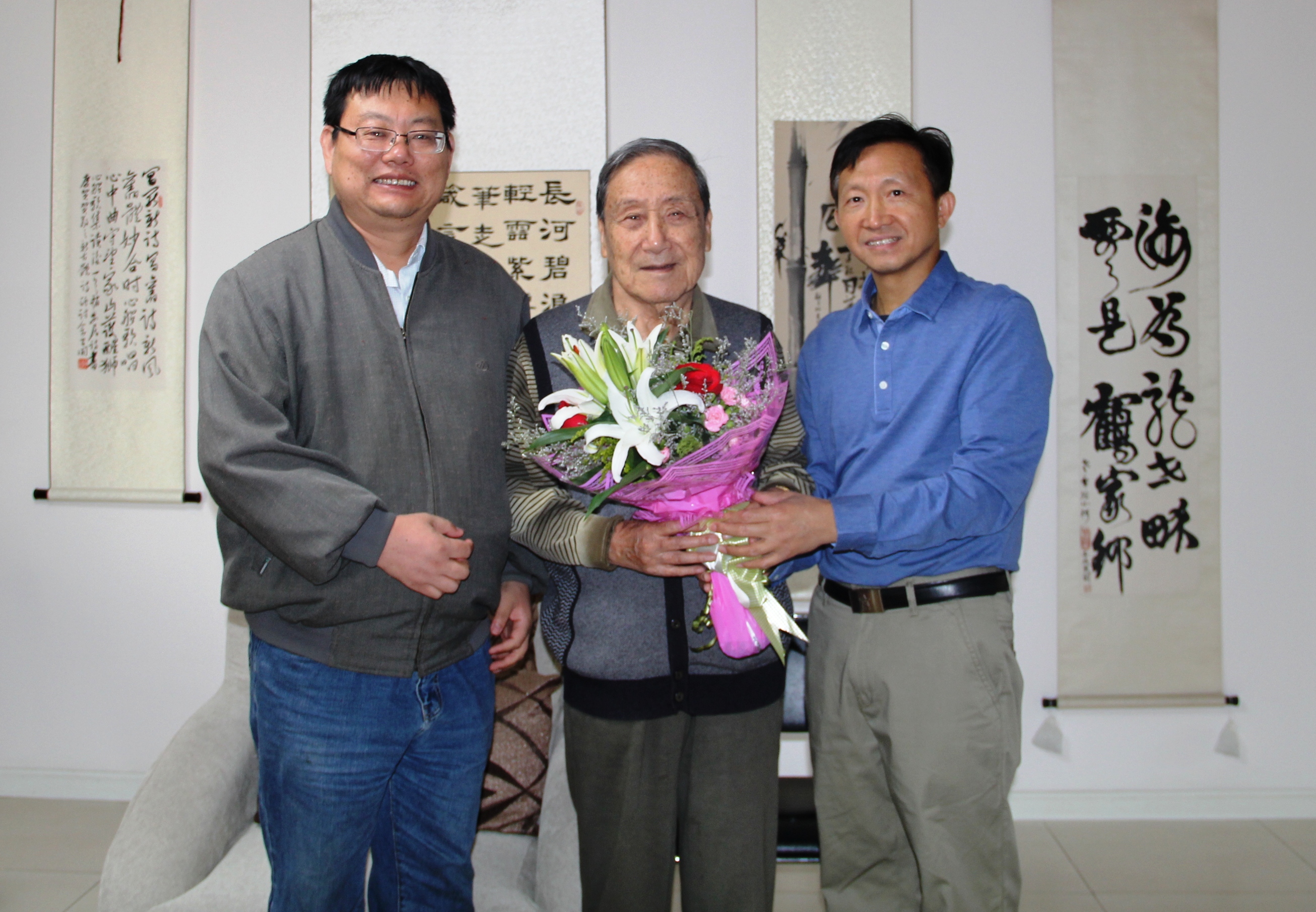 十月三日上午,按照事先约定,我随中国诗歌网主管部门负责人——中国作家出版集团文学与出版管理部主任杨志学老师,专程拜访了诗歌界前辈、现代著名诗人和剧作家贺敬之先生。陪同我们一同前往的是《中国文化报》理论部主任、诗人高昌老师。我们向贺老送上鲜花等礼品,转达了中国作家协会副主席、中国作家出版集团管委会主任何建明同志对贺敬之部长的衷心问候,也代表我们网站全体人员向贺老送上了热诚的节日祝福。