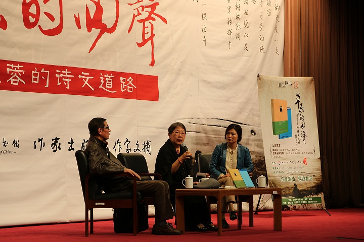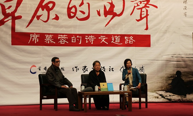 台湾著名诗人席慕蓉(中)、中央民族大学教授贺希格陶克陶(左)、《作家文摘》总编张亚丽