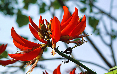 刺桐,这种海外“舶来”的树种,花型奇特,像一簇簇辣椒,花色殷红,真正“红得好像燃烧的火”,美艳浓烈、自由奔放、毫不中庸、绝不含蓄、个性铮铮、锋芒毕露,和中国传统的梅兰竹菊的清雅、细致、清淡风格大相径庭。在花的世界里,如果刺桐不代言“自信”,就没有更合适的花了。