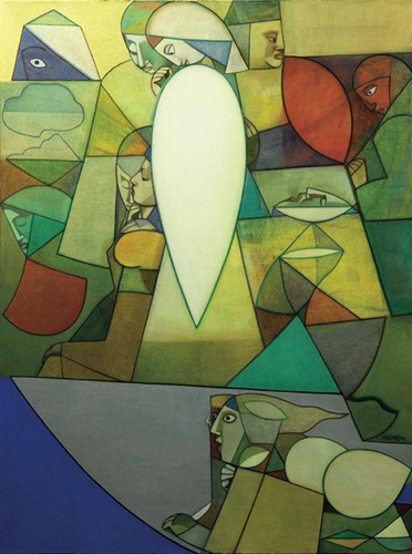正在中华艺术宫举行的“印度美术作品展”展品《Crossing The River》。