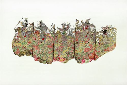 正在中华艺术宫举行“皮影艺术展”的展品《云朵子·劈桃山》。