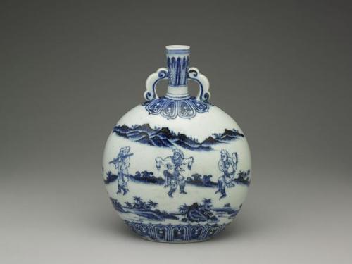 明永乐青花人物扁壶