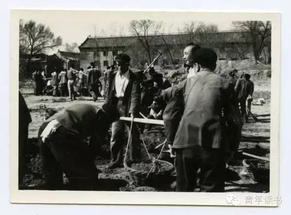 1958年,季羡林在北大校内参加劳动