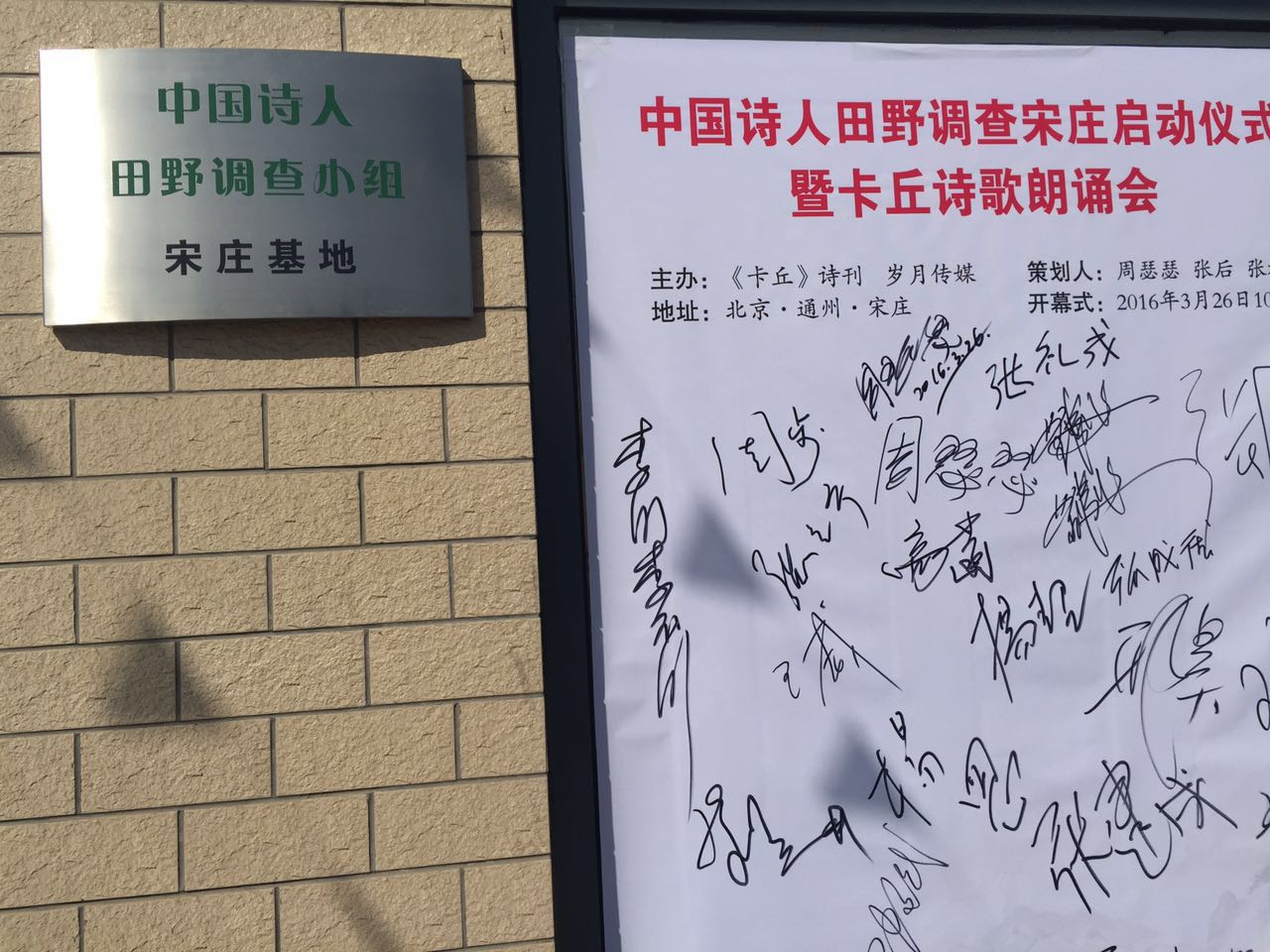 研讨会后进行了诗歌朗诵与中国诗人田野调查小组宋庄基地揭牌仪式。