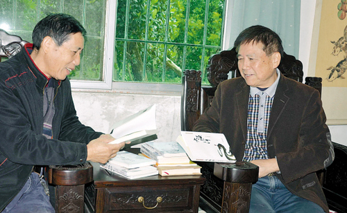 洪三泰与洪三川在分享“丰收”的喜悦 袁增伟 摄