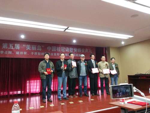 第五届“美丽岛·中国桂冠诗歌奖”颁奖典礼于2016年4月24日下午在苏州昆山锦溪古镇苏州诗院举行。该活动由同济大学诗学研究中心、云南大学中国当代文艺研究所、中国(香港)艺术评估学会、中国诗人俱乐部、汉语诗歌资料馆、世界诗人大会(中国)苏州诗院等组织,主要是对21世纪以来在当代汉语诗歌领域做出杰出贡献的个人予以表彰,以21世纪以来对当代汉语诗歌的贡献为主要考量,其荣誉并非专指获奖年度,重点褒奖在当代诗歌征途上跋涉二十年以上的忠实探路者及铺路者,已被公认为当代最具份量与影响力的汉语诗歌奖项。