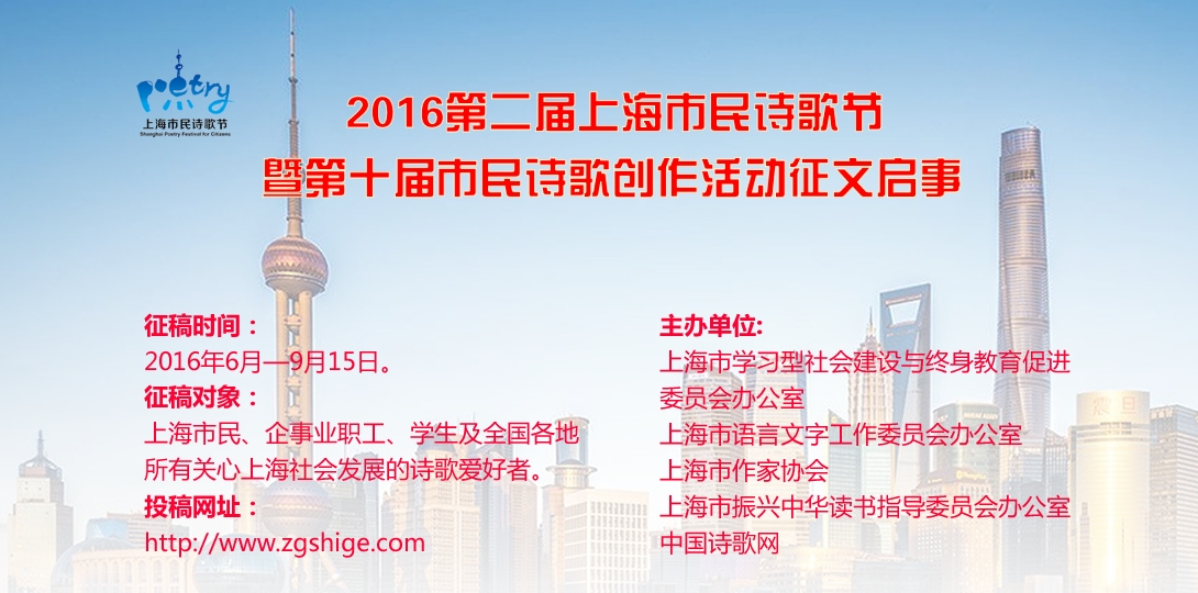 “第二届上海市民诗歌节暨第十届市民诗歌创作活动”网络投稿平台为中国诗歌网(网址:http://www.zgshige.com)