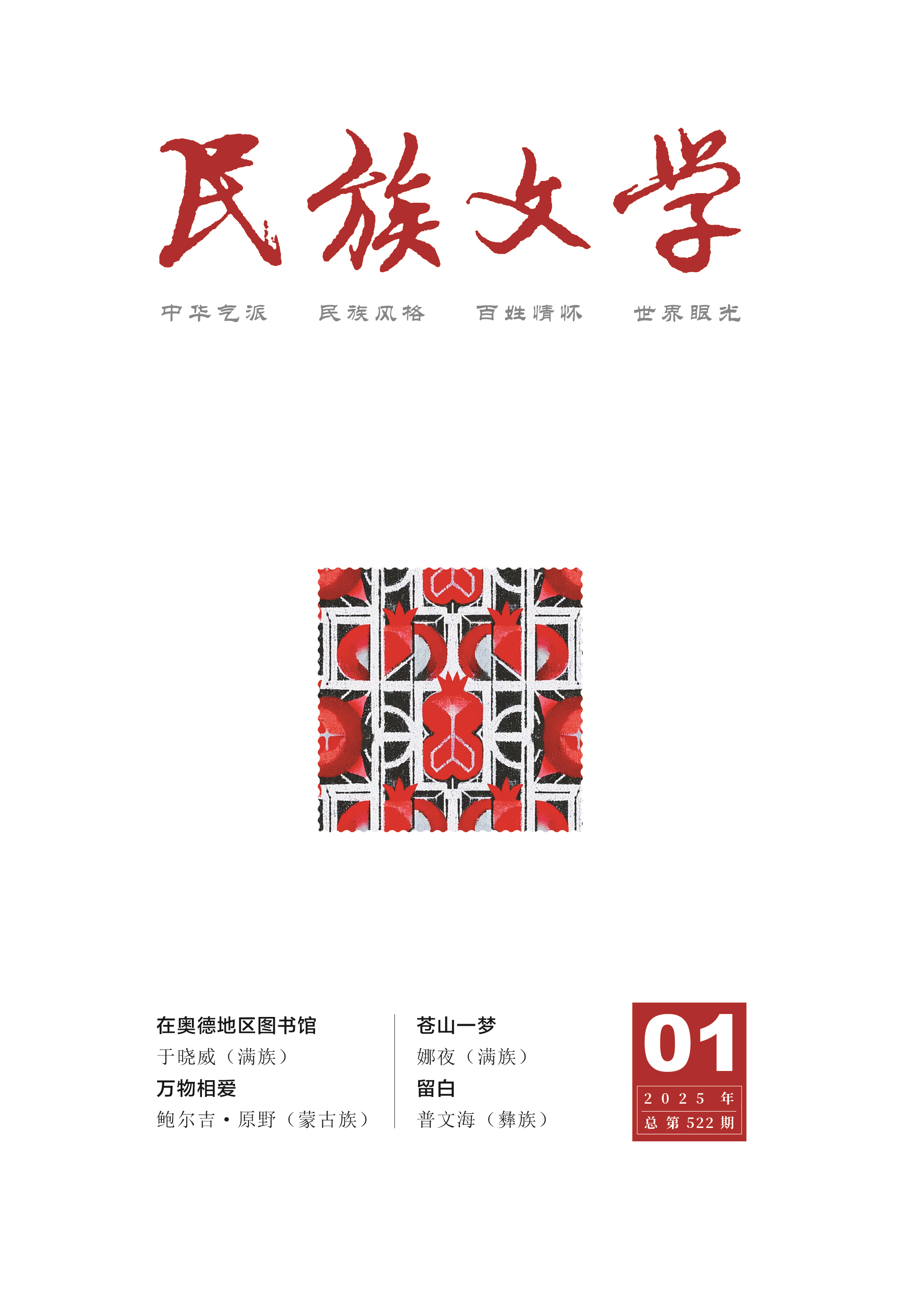 《民族文学》是由中国作家协会主管、主办的唯一国家级少数民族文学期刊。刊物于1981年创刊,目前拥有汉文、蒙古文、藏文、维吾尔文、哈萨克文、朝鲜文等六个文版,其中汉文版主要发表少数民族作家用汉文创作的优秀文学作品,五种少数民族文字版发表国内外优秀作家的精品力作译文和蒙、藏、维、哈、朝等五种少数民族语言文字佳作,是国内外文学精品荟萃的园地。