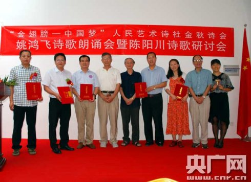 金秋送爽、五谷丰登!2016年8月21日上午,由人民日报《人民周刊.人民艺术》杂志社、人民艺术创作院、人民艺术诗社主办,北京阳光艺术团、北京星光诗韵艺术团、北京海淀区中关村悦读会协办的主题为“金翅膀——中国梦”人民艺术诗社金秋诗会姚鸿飞诗歌朗诵会暨陈阳川诗歌研讨会,在北京王西洲美术馆隆重举行。