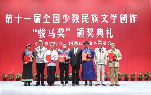 何永飞的《茶马古道记》再现了这条千年古路作为生命之路与文化之路、通商之路与血缘纽带之路的神奇壮美,构思新颖独特,想象恣肆缤纷,气象恢弘、内涵丰厚。崔龙官的《崔龙官诗选集》深切表达了对祖国、故乡和人民的热爱,体现了“天地人和”的意境,以横式结构,实现“一诗多像、一诗多境”,在朝鲜族诗歌中独具特色。妥清德的《风中捡拾的草叶与月光》苍茫而悠远,以丰富的想象,回望裕固族人心中的草原,在历史与现实的相互映照中,表达民族的忧思与梦想。鲁娟的《好时光》,意象饱满多姿,语言精湛简练,以时间和成长为经、以爱情和生命为纬,表达彝族文化背景下个人丰盛深邃的内心生活。依力哈尔江·沙迪克的《云彩天花》,体现了新世纪以来维吾尔族诗歌创作的较高水平,以真挚美妙的语言,抒发亲情、乡情、爱国之情,具有深厚的民族生活内涵和鲜明的时代特色。