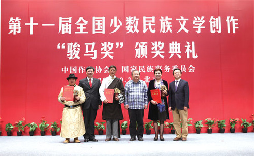 马英长期坚持蒙译汉工作,翻译了大量当代文学作品,在评奖期内完成的《鄂尔多斯1943》,是一部准确传神的翻译佳作。久美多杰致力于藏汉互译,译作涵盖小说、诗歌、散文、民歌等文学门类,忠实原文,流畅传神,在“信、达、雅”诸方面均达到较高水平。姑丽娜尔·吾甫力具有深厚的文学功底、较高的学术素养和长期的翻译经验。她在评奖期内由维吾尔语译为汉语的《苏图克·布格拉汗》,深入把握原作的历史文化内涵,文字细腻准确,具有较高的文学品质。