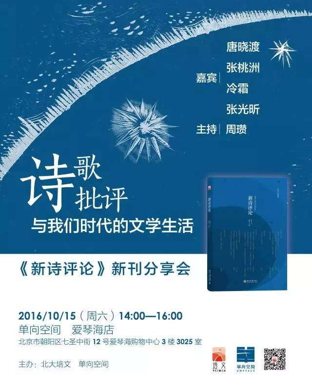 【活动主题】诗歌批评与我们时代的文学生活——《新诗评论》新刊分享会