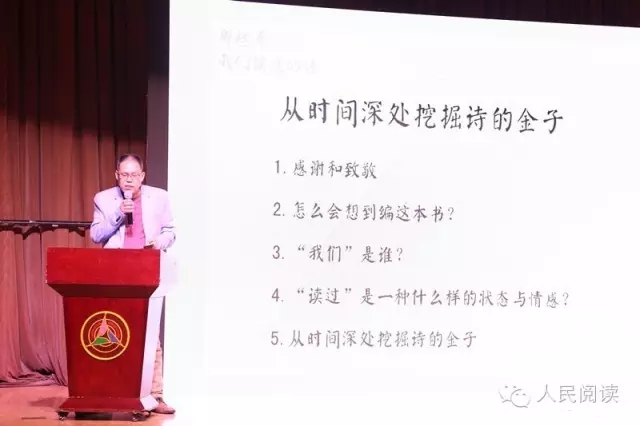 活动首先由《那些年我们读过的诗》的编选者周瑟瑟以“从时间深处挖掘诗的金子”为主题发言。他就该书的编选思路,书名中的“我们”“读过”等词语的概念做了明晰的阐释。周瑟瑟认为,这本诗集之所以受欢迎在于创意,在于与移动互联网紧密结合,并且从时间深处挖掘出了诗的金子。