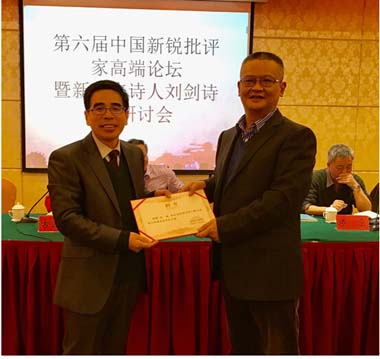 2016年12月12日,由东西方诗人联合会、安徽师范大学文学院、《文艺争鸣》杂志社等单位主办的"第六届新锐批评家高端论坛暨刘剑诗歌研讨会"在芜湖市碧桂园凤凰酒店隆重召开。来自全国各地60多位著名批评家和诗人参与了此次盛会,就刘剑诗歌创作以及诗人与批评家之间的微妙关系,展开了热情而赋有成果的学术探讨。
