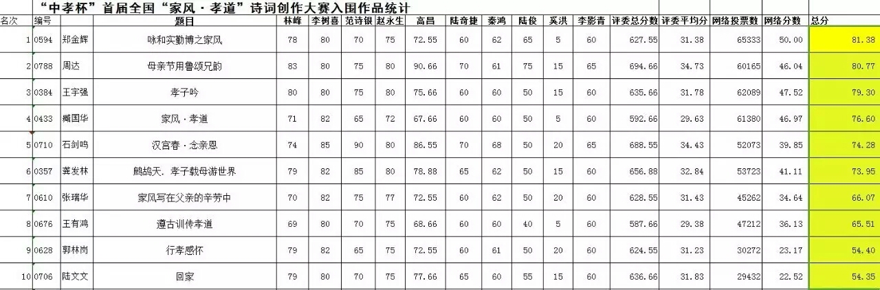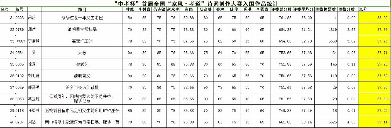 按照比赛最终得分,前五十名参赛作品名单及得分明细如下:
