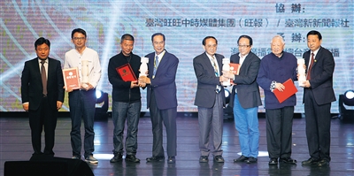 2016两岸诗会桂冠诗人颁奖典礼在台湾佛光山举行,右二为诗人洛夫。海南日报记者 宋国强 摄