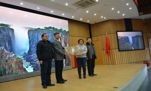 101中学程翔副校长、语文教研组长张新村、石宇接受小作协牌匾