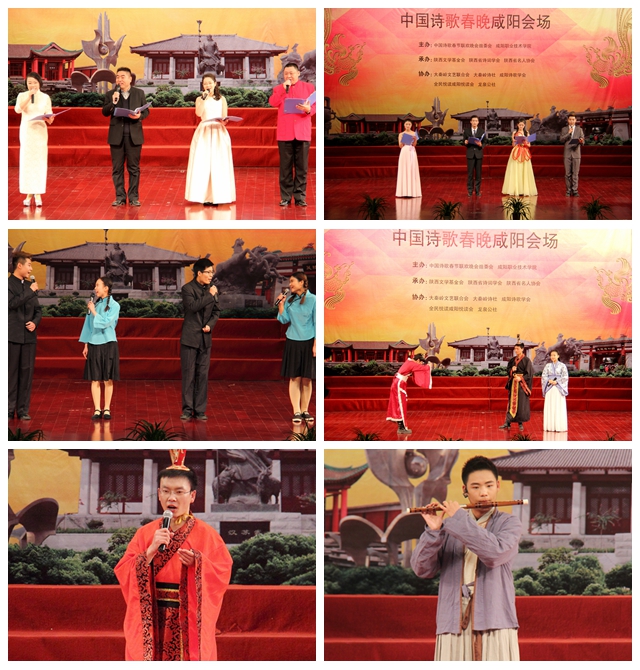 海茵、陈爱美、银河、伊兰、曲波、思远等著名朗诵艺术家和咸阳职院师生诗歌爱好者同台演出。他们一起朗诵了《诗经》《离骚》《唐诗》《毛泽东诗词》《刘聪博•诗颂中华篇》《美哉•咸阳》等诗歌作品,歌咏了咸阳这一片热土沸腾如火的生活画面,精彩演绎了诗歌中的咸阳,这个中国第一帝都、古丝绸之路的第一站的卓然风采,表达了咸阳人创新进取的时代精神。职院大学生艺术团精心编排的集体舞蹈《荷风盛世》《汉风雅韵》更是巧妙地把诗情动作化,像是一种升华与飞翔。