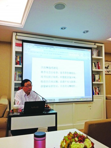 在静安书友汇的一间小办公室里,记者见到了胡中行教授。每周六,他都要在这里给静安诗词社的七十多位会员讲诗词,点评他们的作品。这是他从复旦大学中文系退休后的日常工作之一。