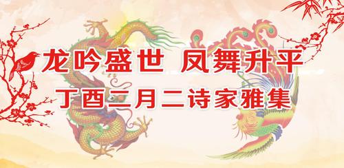 2月27日,丁酉年二月初二。北京红太阳生态园,碧水如镜,新柳如梳,草萌青眼,桃蕴初红。由北京东方中国诗书画院会同解放军红叶诗社、北京诗词学会、北京苏轼文化研究会等单位举办的“龙吟盛世-凤舞升平——丁酉二月二诗家雅集”在此隆重举行。郑伯农、李栋恒、代雨东、周笃文、宣奉华、赵立凡、张桂兴、周兴俊、常宝立、晨崧、王德虎、陈廷佑、苏玉东、陈太栋、王妍丁、李俞汶、戴平、隋曙光、周志伟等100余位中国著名诗人咸集于此,以“二月二龙抬头”文化为主题,把盏举杯,续兰亭风雅,继中华文脉,歌盛世风情。雅集活动由著名主持人张松松主持。