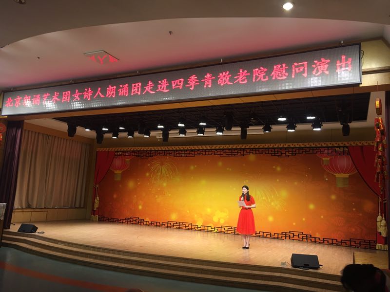 本次慰问演出是女诗人朗诵团于3月5日成立,在西城区文化中心首演后的第二场演出。团长王妍丁表示朗诵团将把这样的公益活动推动下去,践行以诗歌艺术传递美好大爱的初衷。