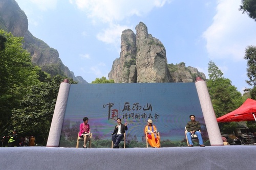 随着《中国诗词大会》等节目的热播,每个人心中的一颗诗心逐渐被唤醒。4月21日-22日,《中国雁荡山诗词朗诵大会》在雁荡山灵峰景区拉开帷幕。本次大会由温州市雁荡山风景旅游管委会、中国作家协会中国诗歌网联合主办,雁荡山管委会文化宗教局、雁荡山旅游发展集团、温州日报旅游全媒体、江南游报、乐清市文联等单位联合承办,大会精心设置了雁山夜读、名人访谈以及诗词擂台赛等多个环节,让嘉宾、大学生和游客一同追随那些描写奇秀山水的经典诗句,畅游雁荡。