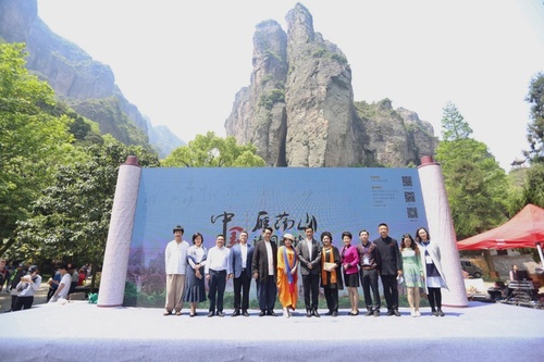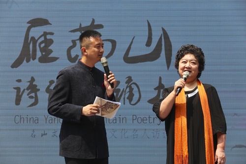 22日上午,《“名山文踪”第三期文化名人访谈录》在青年琴师杨豫光的古琴声中如约而至,这也是诗词大会第二个环节。本环节由担任《新闻直播间》 、《文化十分》等多档央视节目主持的著名新闻播音员梁艳主持。朗诵家非也,诗人梁晓明,《诗意中国》制片人、总导演张宏等嘉宾与游客面对面进行了近距离交流。随后,嘉宾们还依次朗诵描写雁荡山的古诗词以及当代诗作,为观众再一次带来视觉、听觉的双重享受。著名朗诵艺术家、新中国首部儿童电影《祖国的花朵》主演张筠英也登上舞台,为大家献唱《让我们荡起双桨》,并咏读浙江著名诗人黄亚洲诗作《雁荡感觉》。