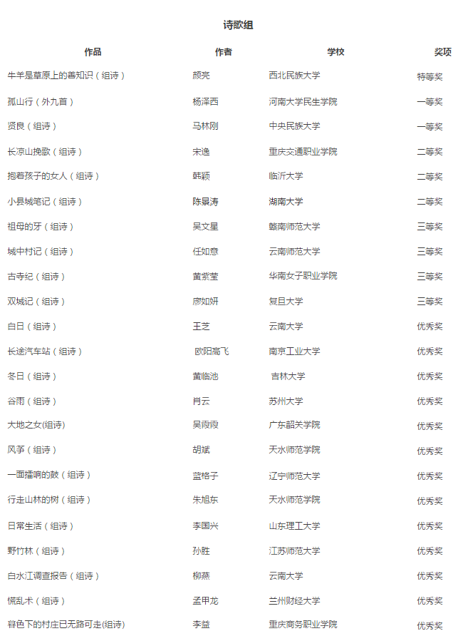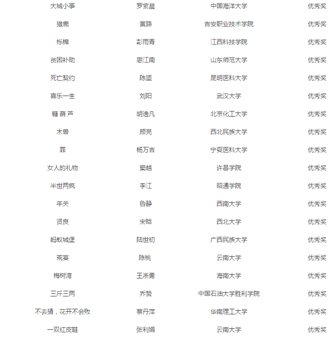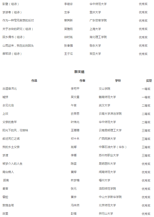 散文组和小说组经终审评委意见,特等奖空缺。