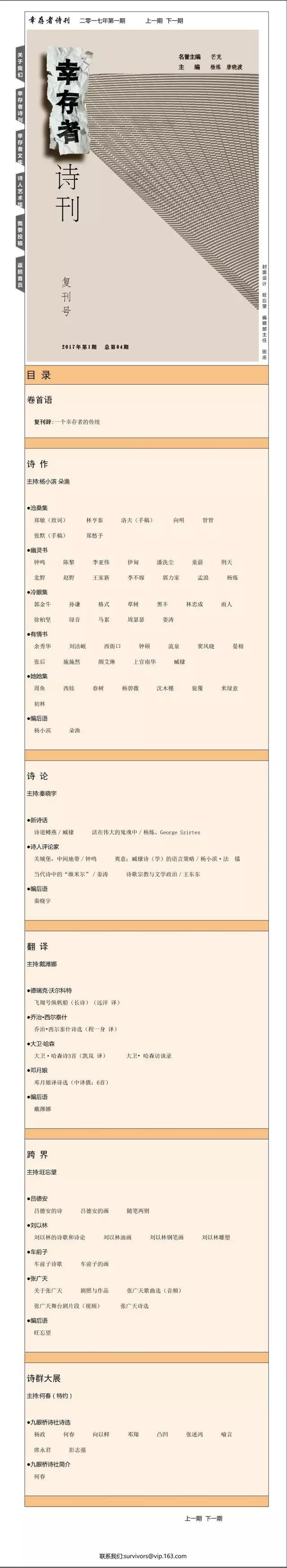 幸存者诗刊复刊号(2017年 第一期)目录