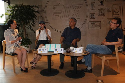 对谈现场,左起向右依次为主持人、张天翼、格非、李洱