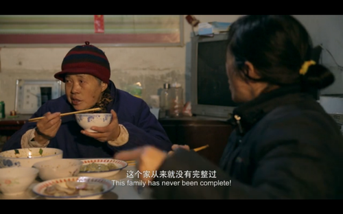 而在人物和事件方面,薛明更多的则是用手持摄影去表现人物情绪,进而塑造人物性格。看过该片的观众大概会对余秀华离婚遇到困难时的一个镜头印象深刻,余秀华在镜头的角落里紧抱双膝哭泣,占据画面正中的是一大幅鸳鸯图。薛明回忆起当时拍摄的细节,“实际上我们知道她在屋里哭,我就想进去还是不进去,我自己也特别胆怯,我进去她把我骂出来怎么办,所以我先一个人偷偷进去,看她没吭声,我就悄悄地拍,先拍一个大景,再一点一点往前靠”。
