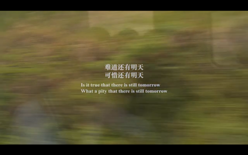 在电影的结尾,落版是“难道还有明天,可惜还有明天 ”,前一句去日苦多,后一句来日方长。余秀华说,写这两句时确实很悲观,但现在就会把这些潜意识放在一边,生活里还是要乐观才能活下去。无数人的生活经验告诉她,人很多时候就是得“不要脸”,但这种“不要脸”到骨子里就是一种自卑。到现在为止,余秀华觉得明天还是一个不确定因素,即使生命在今天终止,只要忠实于现在就没有任何遗憾;相反,如果有很多个明天串在一起,整个生命反而是一种消耗和伤害。所以明天可以不要,但要接受它的存在,不能现在就自杀,自杀对于生命本身没有任何意义,这是一种悲剧的收场而不是某种奇迹。