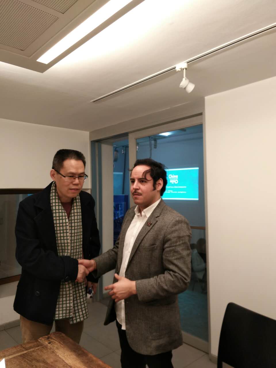 周瑟瑟与聂鲁达基金会外联部主任塔米恩·毛雷因(右)