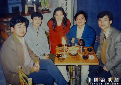 1996年张况(右1)与诗人黄礼孩、赵绪奎、野夫、张淑芬在广州