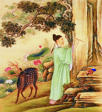 雍正帝行乐图 图中雍正皇帝扮成苏轼于山野题诗