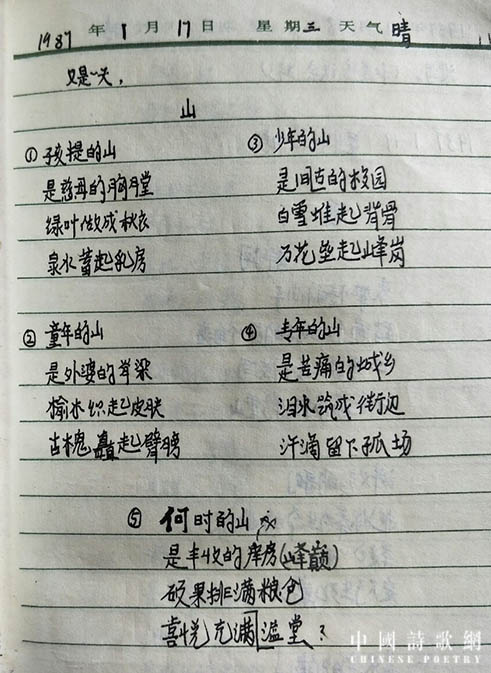 裴彩芳:喜欢文学是在小学时期就开始了,但自己并不知晓,总是省下父亲给我零花钱订阅各类书刊,比如当时的《故事会》、《少年文艺》、《儿童文学》等,特别是有插图的小人书和长篇小说,看《敌后武工队》、《钢铁是怎样练成的》,那时阅读很费劲,很多字不认识,囫囵吞枣。但并没有什么个人意识是喜欢文学,也没有作家梦和诗人梦,就是广泛阅读,当成娱乐。最早写的一首诗很拙劣,诗的题目是《山》: