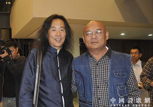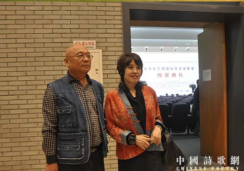 参加北京文艺网国际诗歌大赛颁奖典礼,与诗人翟永明合影,2014年,北大