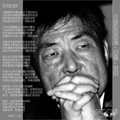 当蜘蛛网无情地查封了我的炉台,/当灰烬的余烟叹息着贫困的悲哀,/我依然固执地铺平失望的灰烬,/用美丽的雪花写下:相信未来。//当我的紫葡萄化为深秋的露水,/当我的鲜花依偎在别人的情怀,/我依然固执地用凝露的枯藤,/在凄凉的大地上写下:相信未来。//我要用手指那涌向天边的排浪,/我要用手掌那托住太阳的大海,/摇曳着曙光那枝温暖漂亮的笔杆,/用孩子的笔体写下:相信未来。//我之所以坚定地相信未来,/是我相信未来人们的眼睛——/她有拨开历史风尘的睫毛,/她有看透岁月篇章的瞳孔。//不管人们对于我们腐烂的皮肉,/那些迷途的怅惘,失败的苦痛,/是给予感动的热泪,深切的同情,/还是给以轻蔑的微笑,辛辣的嘲讽。//我坚信人们对于我们的脊骨,/那无数次的探索、迷途、失败和成功,/一定会给予热情客观、公正的评定,/是的,我焦急地等待着他们的评定。//朋友,坚定地相信未来吧,/相信不屈不挠的努力,/相信战胜死亡的年青,/相信未来,热爱生命。