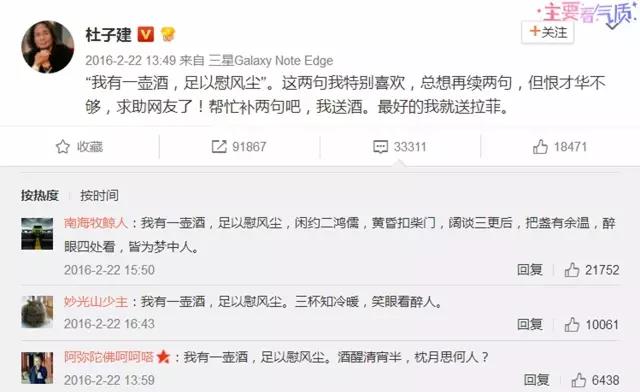 △网友“杜子建”发起 “我有一瓢酒”续诗活动引发热潮