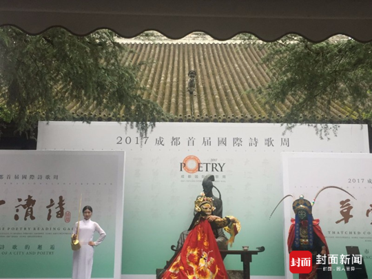“当春昼,摸石江边,浣花溪畔景如画。”“锦江近西烟水绿,新雨山头荔枝熟。”柳永《一寸金·成都》,张籍《成都曲》,陆游《成都书事》等古典诗词被精彩演绎,中国和外国诗人轮番上台朗诵自己的现代诗作……,14日下午,2017成都首届国际诗歌周在草堂举行了“草堂读诗”活动,中外近30个国家的近百位诗人,相聚草堂,吟诗赏词听曲。诗人们通过诗歌这一共通的人类语言,彼此感受对方的诗句,增进了对彼此心灵和精神的深入了解。恰逢细雨霏霏,凉风阵阵,在草堂的翠竹苍松、红墙灰瓦间,诗人们也再次从深切感受到成都这座城市独特的人文之美。