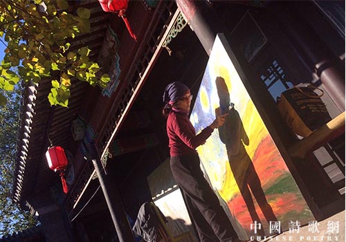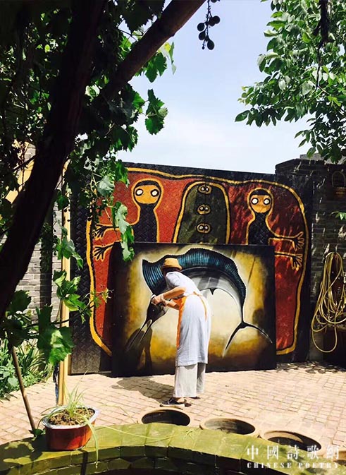 赵丽华:难道你不觉得我已经把我的生活过成诗了吗?你觉得整个宋庄乃至全国有比我梨花公社更漂亮的地方吗?包括墙上这么多画!包括我们很多自己做的蓝印染、蓝夹缬、扎染、蜡染,包括我做的瓷器,包括我们种这么多花花草草!诗意人生,把生活过成诗,与每天写诗比,岂不是更好的状态,更高的境界?