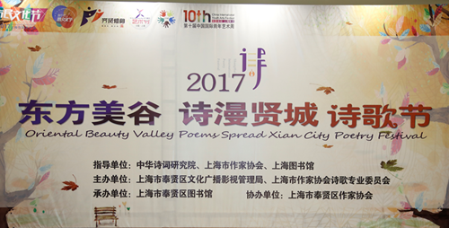 10月10日,2017“东方美谷•诗漫贤城” 中外诗人雅集活动在上海市奉贤区召开。作为2017上海国际诗歌节活动的一部分,有近三百余位诗人参加了当天的活动。教育部政策法规司原司长、国家督学、中国教育发展战略学会执行会长孙霄兵、国务院参事室、中华诗词研究院副院长杨志新、上海市作家协会副主席、《上海文学》社社长、市政府参事、本次国际诗歌节艺委会主席赵丽宏、荷兰诗歌节主席巴斯•夸克曼(Bas Kwakman)、奉贤区人民政府副区长人选袁园等分别致辞。