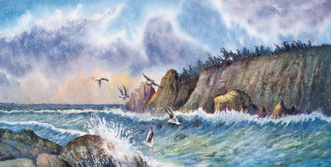 ▲冯雪峰借翻译高尔基成就了中国的“海燕”。图为美术作品《海燕浪花共舞曲》